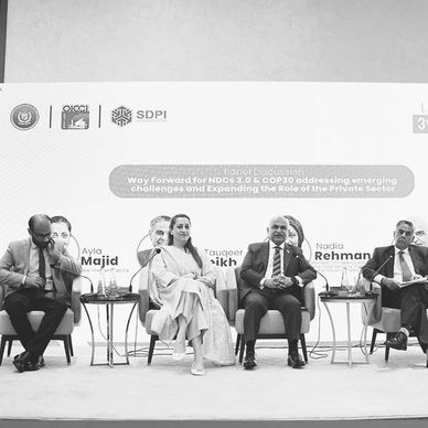 At the Leaders in Islamabad Business Summit held in April, 2024, our Founder & CEO, Ayla Majid, participated in a crucial session on "Pakistan's Power Sector: A Way Forward." Alongside prominent figures like Federal Ministers Muhammad Ali and Sardar Awais Leghari, and industry leaders from K-Electric and Lucky Electric Power Company, Ayla Majid contributed her insights on addressing the challenges in Pakistan's energy landscape. The session highlighted the importance of diversifying into renewable energy sources, enhancing efficiency, and fostering public-private partnerships to drive sustainable progress in the sector.